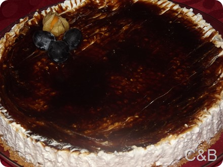 Um pouco antes de servir coloque a cobertura e decore e leve novamente ao frigorífico, com o aro.