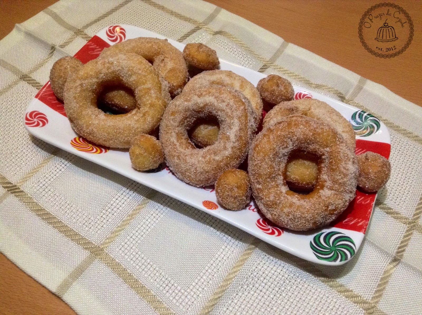Sabem quando vos apetece mesmo algo, mas mesmo muito? Aconteceu-me isso há uns tempos com donuts. Mas a minha experiência com donuts caseiros não era a melhor. Tinha experimentado fazer uma vez, donuts no forno e com cobertura de chocolate. Ficaram muito secos e desisti, nunca mais fiz. Mas num destes fins de semana apetecia-me mesmo colocar as mãos na massa e lá fui para a cozinha. Fiz uma receita muito simples que nem precisa levedar, é verdade que os fritei mas ficaram muito fofos e deliciosos. Um dia talvez experimente fazê-los no forno.