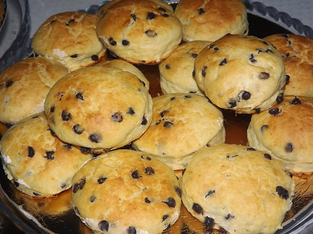 Uma das minhas tradições, com a minha mãe, nesta época natalícia (não me chateiem, já estamos na época natalícia sim senhor) era e é fazer scones. Adoramos scones e eu adoro chá com leite (hábito que tenho desde miúda) a acompanhar. E apesar do tempo não estar assim tão frio quanto isso, do meu forno saíram uns scones bem saborosos e diferentes do habitual, aos quais juntei pepitas de chocolate e ficaram a parecer os famosos 'manhãzitos' (com um textura bem diferente, é certo).